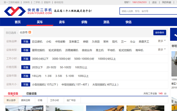 第一工程機械網旗下二手機平臺——快優客www.kuaiyouke.com 或 直接訪問二級域名 ershou.d1cm.com,即可在線查看更多二手工程機械交易信息(含求購及出售)。